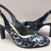 Eleganckie czółenka bez pięty wykonane ze skóry zamszowej ze srebrnym zdobieniem i lakierowanym paskiem do zapinania, środek obuwia wykonany jest ze skóry. Buty posiadają piankę lateksową na całej długości wkładki przez co są bardzo wygodne.